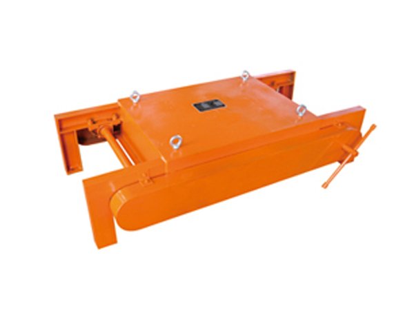手柄等缷铁装置,通过手摇作动力带动链条上刮板将吸附在除铁器上的铁磁性物质刮出,这样省去了人工用手清理铁块的麻烦。产品具有磁场强、吸力大、无需电能、安装使用方便等特点。